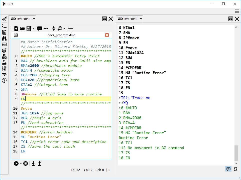GDK and gclib now support an enhanced code preprocessor. The preprocessor modifies the program prior to download providing a number of language features not present in pure DMC code.