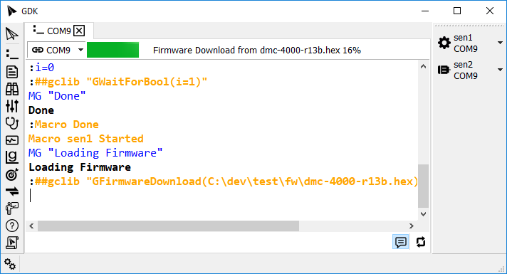 | GFirmwareDownload() | ##gclib "GFirmwareDownload(C:\dev\test\fw\dmc-4000-r13b.hex)" | |